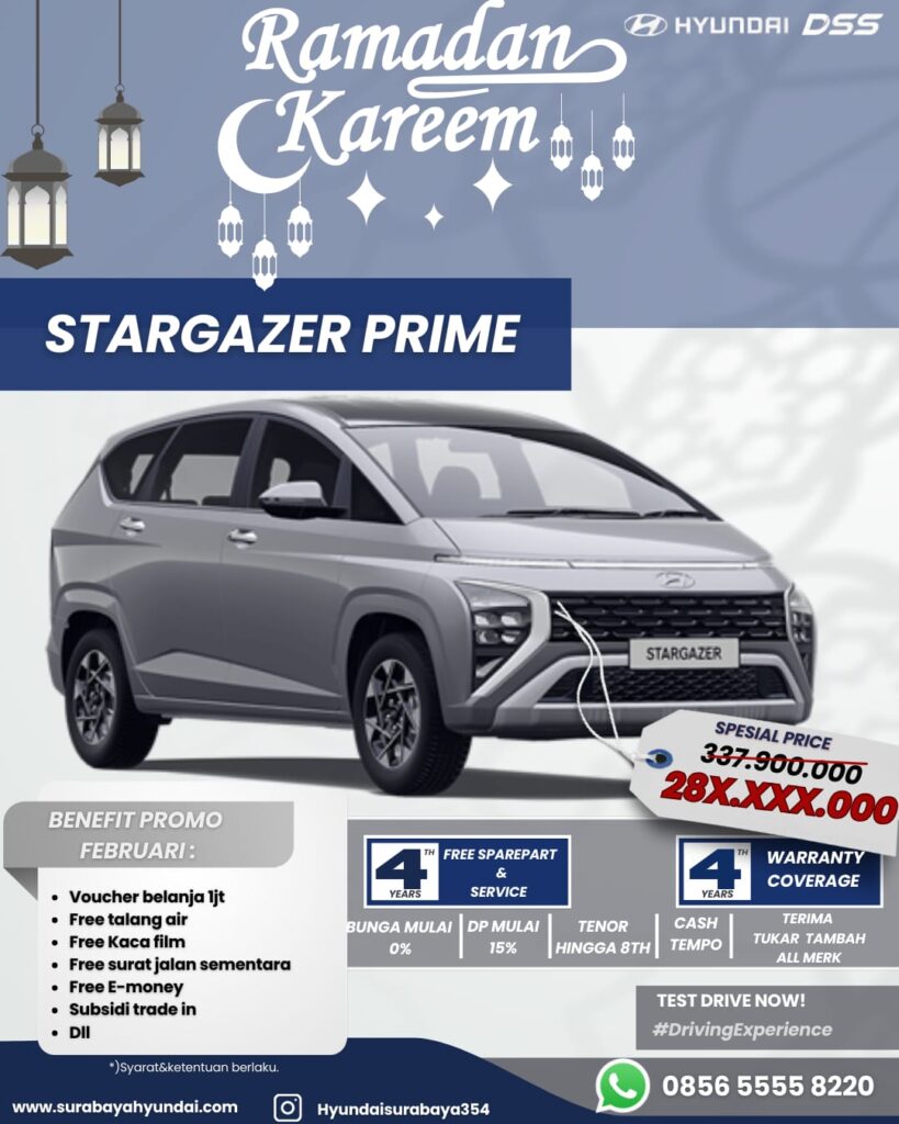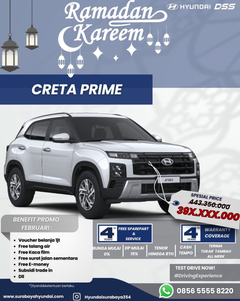 hyundai Surabaya Selamat Datang Selamat datang di website Hyundai Surabaya melayani penjualan area surabaya dan sekitarnya Hubungi Kami PROGRAM PROMO BULAN INI Produk 0 ★★★★★ 5/5 100+ Kustomer A+ ★★★★★ 5/5 50+ Reviews Sales Rekomendasi Hyundai Donie Tantra Hyundai Telp/Whatsapp : 62 856-5555-8220Sales consultant Hyundai Pusat Surabaya Achievement Kelebihan & Benefits Kelebihan Ready Unit Banyak Promo Free Service DP Ringan / Angsuran Siap membantu Anda. Benefits Warranty Free Test Drive Spareparts Buy, Sell ana Trade Package Maintenance Test drive and Book Now Promo akhir tahun Foto Penyerahan Unit ke Kustomer